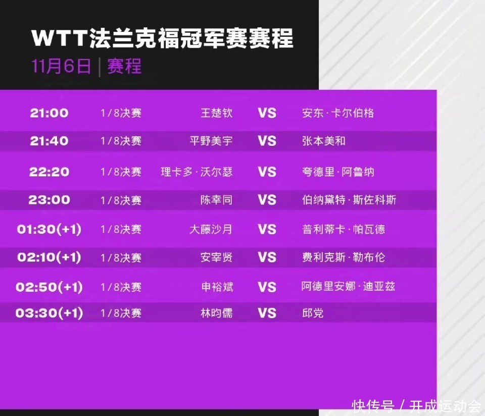 在这个秋意渐浓的季节,乒乓球可爱者们将迎来一场视觉与心灵的盛宴——WTT法兰克福冠军赛R16赛程。11月6日,比赛将轮番献艺,为大家不雅众带来无穷的情谊与感动。