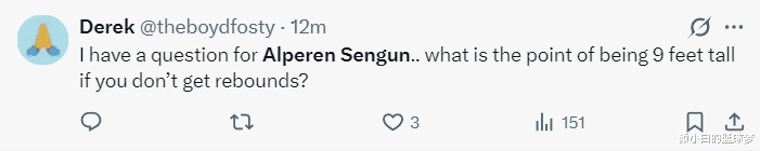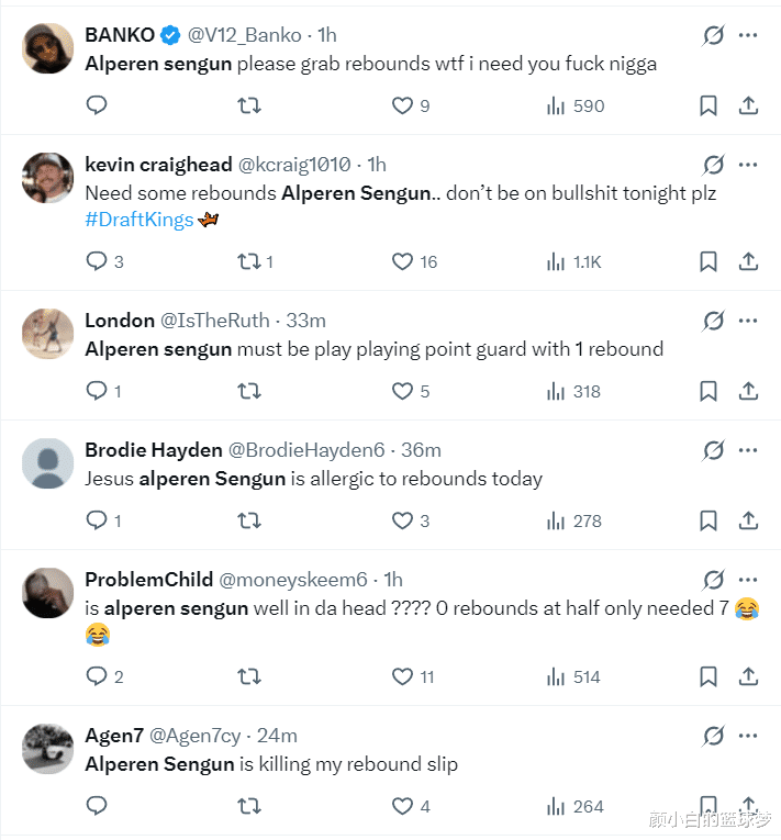 质疑NBA的球迷也有:1.NBA这是被主宰了吗?一个中锋打了半场莫得篮板球?