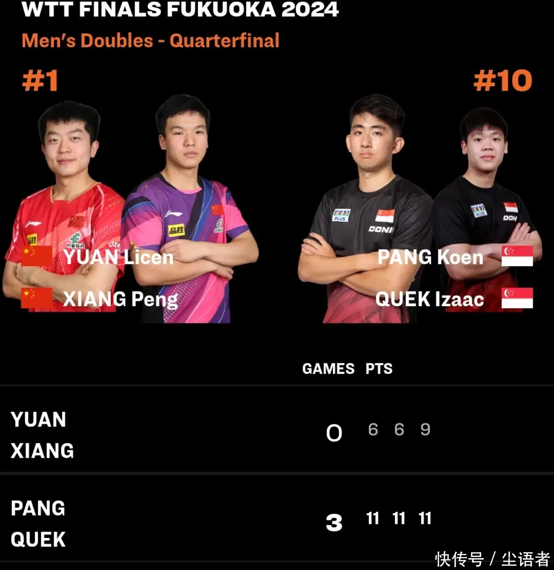点击输入图片描摹(最多30字)最初输外战的为国乒的男双选手,刻下名次寰宇第一的男双组合袁励岑/向鹏,效劳这对寰宇第一的男双选手在比赛中被新加坡组合冯耀恩/郭勇给淘汰了。固然国乒的男双组合名次寰宇第一,但在新加坡组合眼前,却是难以违背。第一局很快就以6:11输了。没思到第二局,又以6:11输了。第三局,照旧到了被淘汰边际的国乒组合终于找到了少量比赛嗅觉,一度以7:1跳跃。但在而后,新加坡组合冯耀恩/郭勇连得6分,并在局末拿到赛点。最终袁励岑/向鹏组合以9-11输掉第三局,大比分0-3爆冷被横扫出局,国乒际遇本届总决赛的首场败仗。
