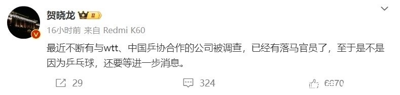 近半个月国内各大官方媒体对樊振东、陈梦的“退赛风云”都进行了握续报谈,其中央视多个频谈更是相配赫然地标明了力挺樊振东陈梦以及摆布WTT的魄力,这么的风向也让身兼WTT寰宇乒联董事会主席、中国乒协主席以及海外乒联第一副主席的刘国梁备受质疑,但是愈加劲爆的是,北京时辰1月7日晚,闻明媒体东谈主贺晓龙在外交平台上爆料:近期不停有与WTT和中国乒协和谐的公司被打听,况且仍是有官员因此落马,但至于是不是跟乒乓球技俩有着径直筹商,当今还需要恭候进一步讯息!那么贺晓龙这则讯息至少从侧面反应出,如今针对中国体坛的反腐行径,仍是伸向了国乒