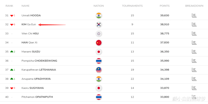 金佳恩最新的全国排名下滑了6个排行还是跌至全国第32,而高昉洁照旧全国第13,四肢国羽主将之一,这场比赛高昉洁输的惨烈。