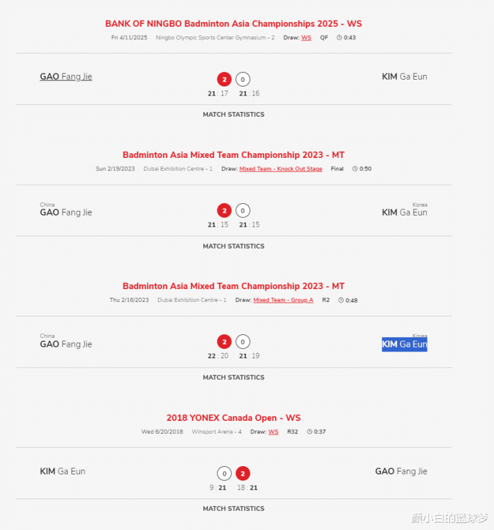 自2018年高昉洁与金佳恩初度交手以来,高昉洁是一波4连胜,此役后高昉洁面临金佳恩的4连胜也就此散伙。27岁的高昉洁在2025赛季的个东谈主泄漏推行上不算好。