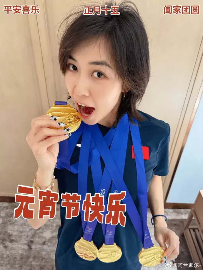 元宵节,速率溜冰畅通员阿合娜尔更新社媒晒出四块亚冬会金牌,并配文:“祝民众元宵节情景,我吃金“汤圆”,你们吃汤圆了吗?”