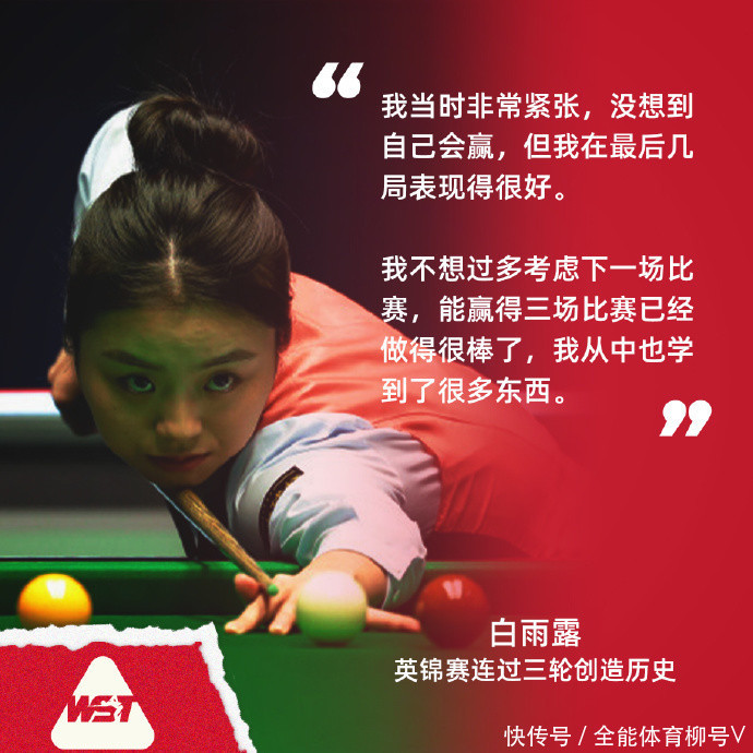 2024年斯诺克英锦赛履历赛,当作女子世锦赛冠军的白雨露,联袂2021年英锦赛冠军赵心童、宿将傅家俊等中国选手强势出战。履历赛第一轮,白雨露以6-4顺服阿贾布。